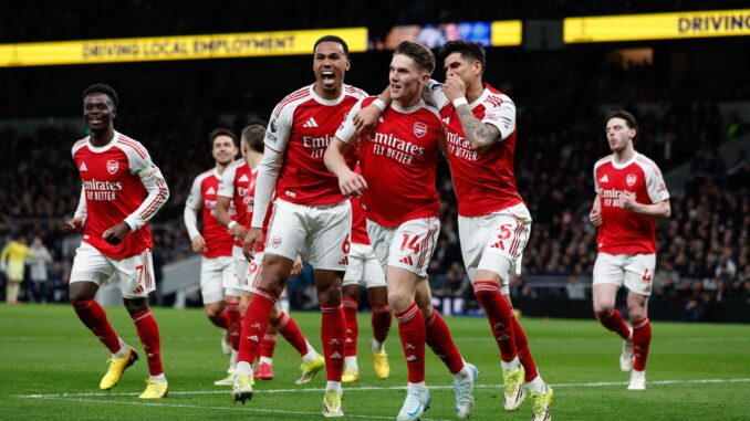 El Arsenal mantiene el pulso por la Premier League tras golear al Tottenham Hotspur (1-4) en el derbi de Londres, que le permite aumentar la diferencia a cinco puntos con el Manchester City, que tiene un partido menos.