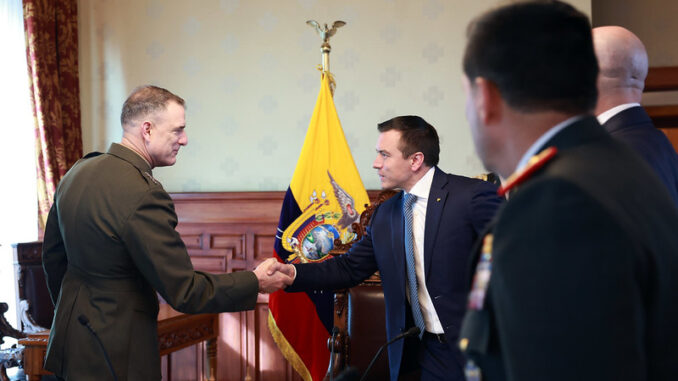 En una reunión a puerta cerrada y con agenda reservada de la cual no se supo sino hasta hace pocos momentos, el presidente de la República, anunció que Estadoss Unidos y Ecuador tendrán acciones conjuntas en el territorio nacional para combatir el crimen organizado alimentado por el narcotráfico y la minería ilegal.