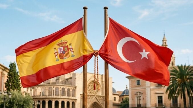 Imagen compartida en redes sociales que muestra las banderas de Turquía y España entrelazadas.