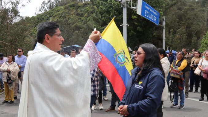 La protesta tiene lugar por la guerra comercial desatada entre Colombia y Ecuador desde febrero, cuando el Gobierno del presidente ecuatoriano, Daniel Noboa, impuso una tasa del 30 % a importaciones colombianas, posteriormente elevada al 50 %, alegando falta de cooperación en la lucha contra el narcotráfico.