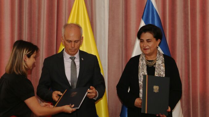 La firma estuvo a cargo de la ministra de Relaciones Exteriores y Movilidad Humana de Ecuador, Gabriela Sommerfeld, y el embajador de Israel en el país andino, Tzach Sarid, quienes destacaron las buenas relaciones que han alcanzado ambas naciones.