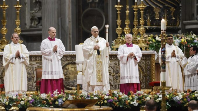 El papa estadounidense-peruano presidió por primera vez en su pontificado la Vigilia de Sábado Santo, una de las más largas de la tradición católica que se inició en una Basílica de San Pedro totalmente a oscuras y en silencio con el rito de la bendición del fuego y el encendido del cirio pascual.