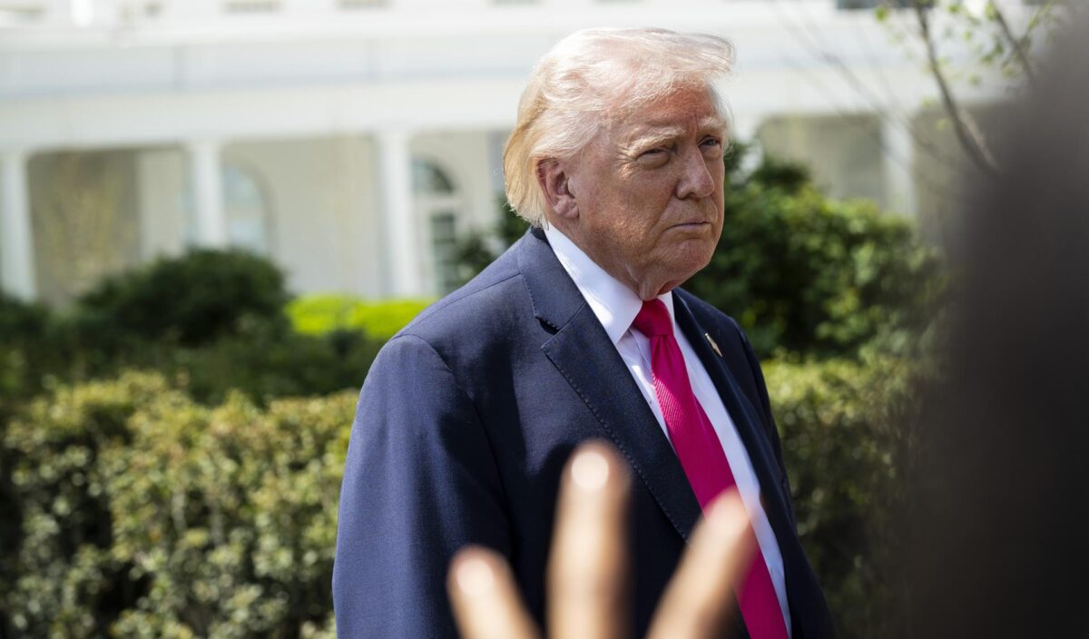 El presidente estadounidense Donald Trump habla con miembros de la prensa en el jardín sur de la Casa Blanca antes de partir en el helicóptero presidencial Marine One, en Washington, D.C., EE. UU., el 16 de abril de 2026. El presidente Trump viaja a Las Vegas, Nevada, para un evento que destacará las políticas fiscales republicanas tras la fecha límite para la declaración de impuestos del 15 de abril. EFE/EPA/GRAEME SLOAN / POOL