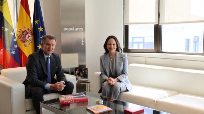 Las declaraciones de Machado a Telecinco se produjeron poco después de que la opositora mantuviera un encuentro con el principal líder de la oposición española, Alberto Núñez Feijóo, con quien escenificó cercanía.