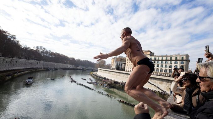 Con el tradicional salto al Tíber, Roma le da la bienvenida al 2026