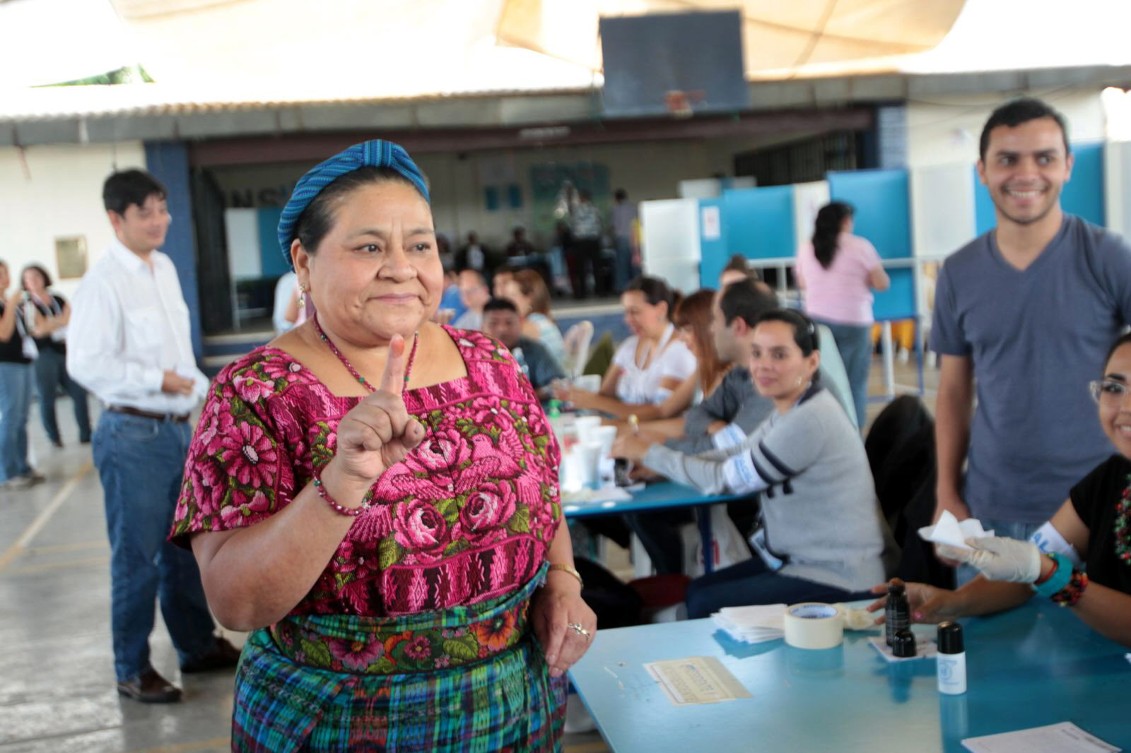 CIUDAD DE GUATEMALA (GUATEMALA), 25/10/2015.-La guatemalteca ganadora del Premio Nobel de la paz Rigoberta Menchú Tum se dispone a votar hoy, domingo 25 de octubre de 2015, en Ciudad de Guatemala. Los guatemaltecos acuden hoy a las urnas para elegir a su nuevo presidente entre el ex comediante Jimmy Morales y la ex primera dama de la nación (2008-2011), Sandra Torres. EFE/Stringer