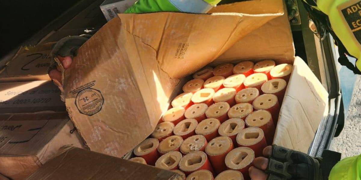 Durante la inspección de un autobús interprovincial, se encontraron varias cajas que tenían material altamente explosivo.