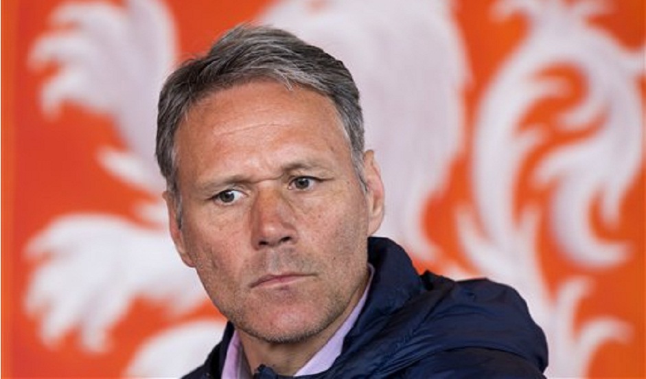 En esta foto de archivo del 20 de mayo de 2016, el exfutbolista holandés Marco van Basten aparece sentado en una conferencia de prensa en Amsterdam. (AP Photo/Peter Dejong, File)