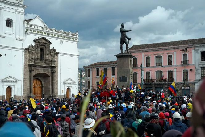 Integrantes del Movimiento Indígena en el centro de Quito, publicada por CNN.