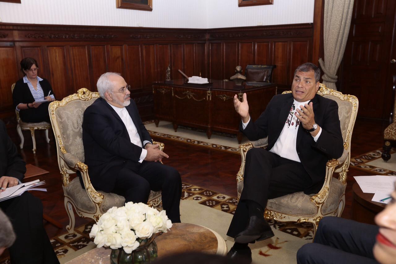 El canciller de Irán Mohammad Javad Zarif junto a Rafael Correa. Foto API.