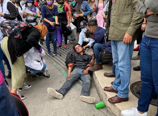 indigente El hombre fue reducido y golpeado por una turba por increpar a las manifestantes, que inclusive le patearon la cabeza y rosearon pintura en su rostro