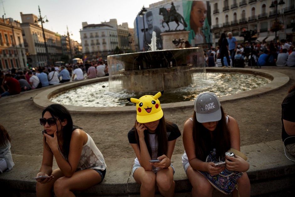 Fans españolas juegan “Pokémon Go” en el centro de Madrid, España, en una fotografía del 28 de julio de 2016. Los creadores de “Pokémon Go” dijeron a The Associated Press que están implementando actualizaciones al juego para que sea respetuoso con el mundo real. (Foto AP/Daniel Ochoa de Olza)