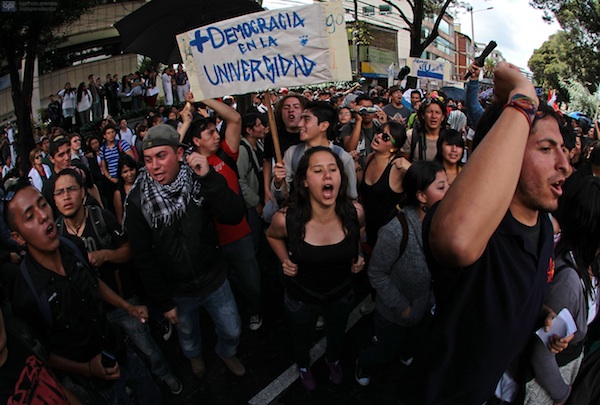 QUITO 20 DE MARZO 2013. Marcha de estudiantes de la Univercidad Central protesta a las afueras del CES. FOTOS API.
