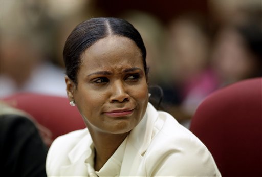 Tameka Foster Raymond durante una audiencia por la tutela de sus hijos con su ex esposo, el cantante R&B Usher el viernes 9 de agosto de 2013, en Atlanta. Un juez en Atlanta escuchará los argumentos en la batalla legal por la tutela de los hijos de la pareja después de Raymond solicitara la audiencia pues uno de ellos tuvo un accidente en una piscina y casi se ahogó. (Foto AP/David Goldman)