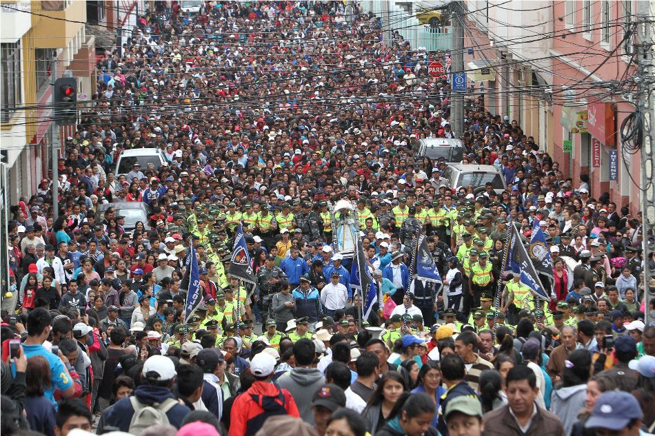 Miles de devotos el despidieron el 1 de noviembre a la sagrada imagen de la virgen de el Cisne en su periplo de retorno a su basílica luego de pernotar tres meses en Loja. Con un clima sombrío desde las 7 de la mañana inició la romería hacia el cantón Catamayo. FOTO/API José Eduardo Mendieta